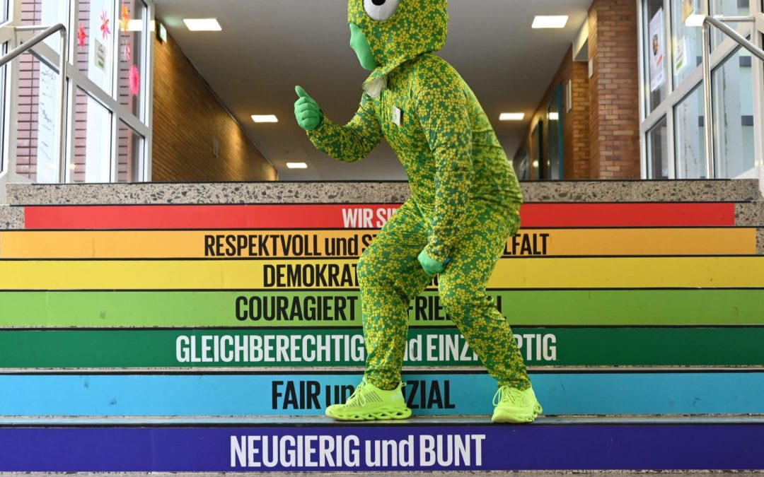 Pustekuchen! Ich wäre beinahe vor Schreck kunterbunt geworden, als früh am Morgen plötzlich die Türen aufgingen und – zack! – die ganze Schulgemeinschaft auf den Hof strömte. Und da dämmerte es mir schlagartig: Tag der offenen Tür! Wie konnte ich das nur vergessen? Ich, Stagy, wandelndes Schulmaskottchen und eigentlich überall gleichzeitig!