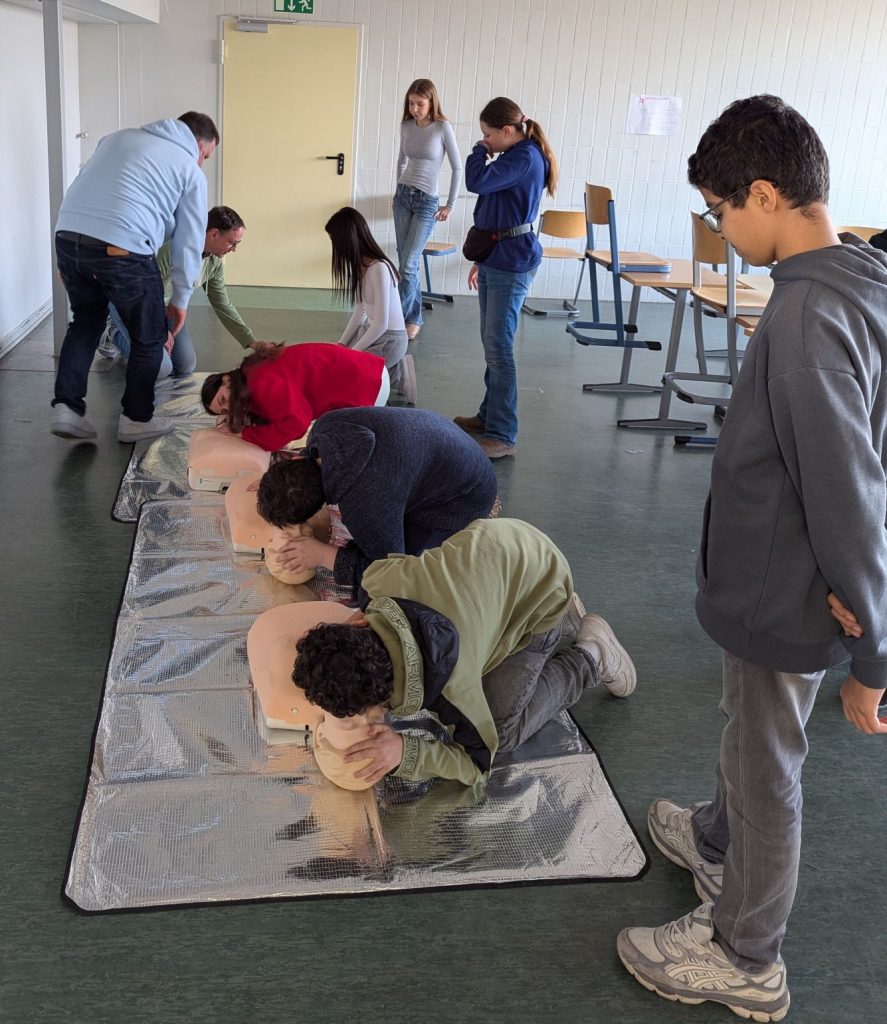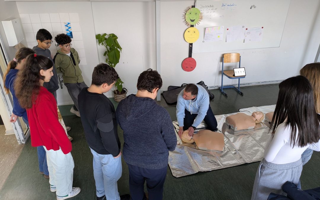Wie schnell aus Wissen echte Lebensretter-Kompetenz werden kann, erlebten die Schülerinnen und Schüler der Klasse 7a am vergangenen Montag. Herr Schilling führte die Gruppe in einem abwechslungsreichen 90-Minuten-Workshop in die Grundlagen der Laienreanimation ein – verständlich, praxisnah und mit genau der richtigen Portion Humor und Ernsthaftigkeit.