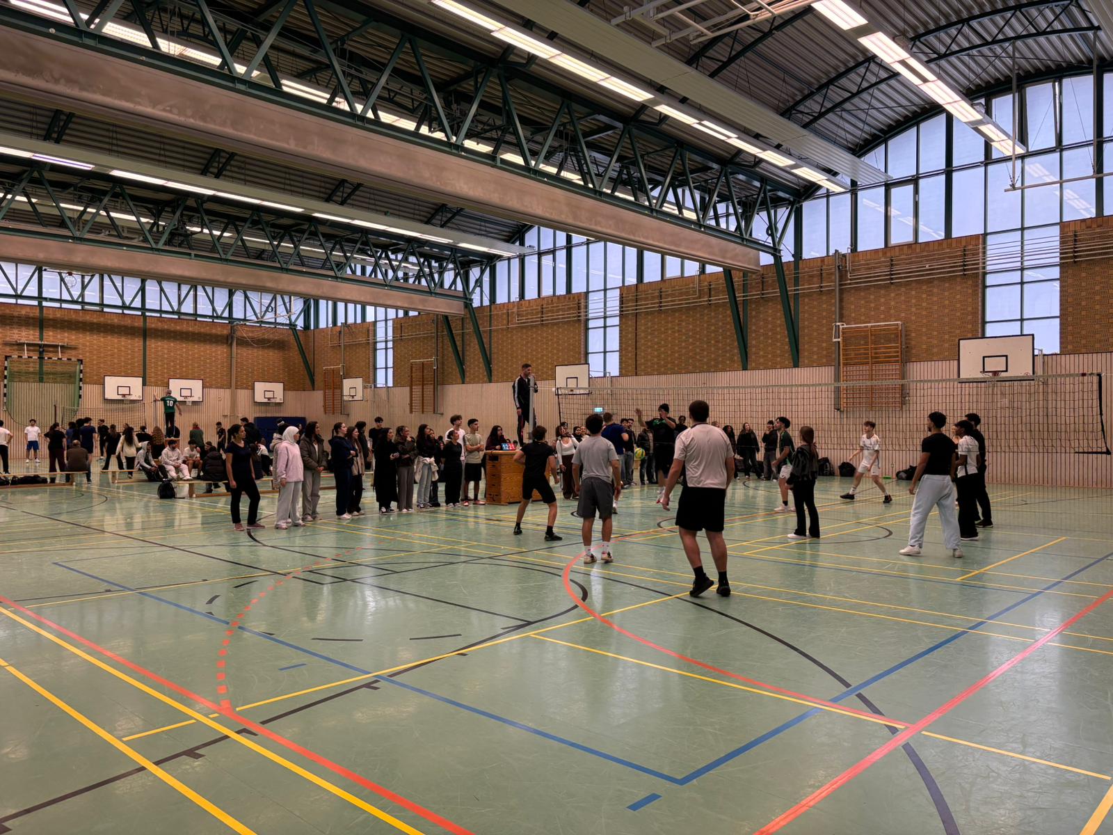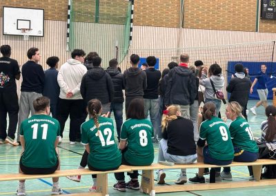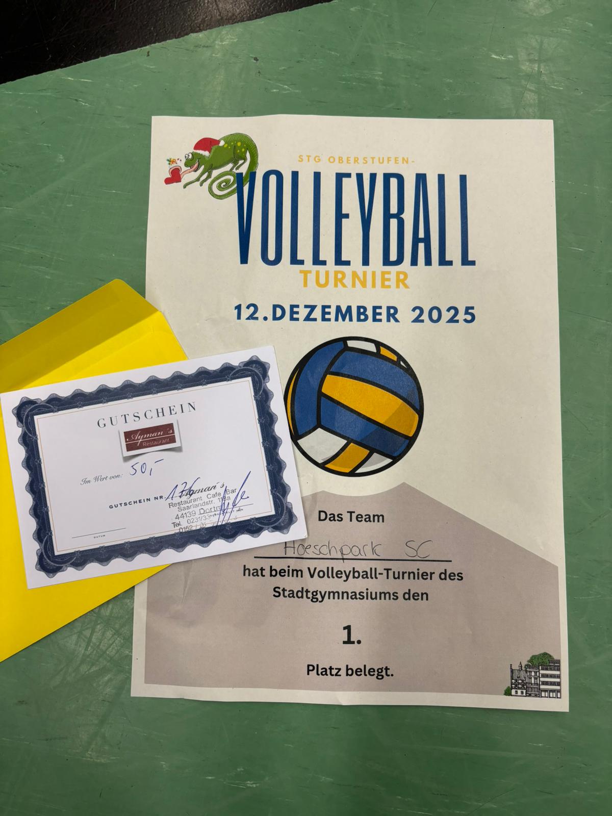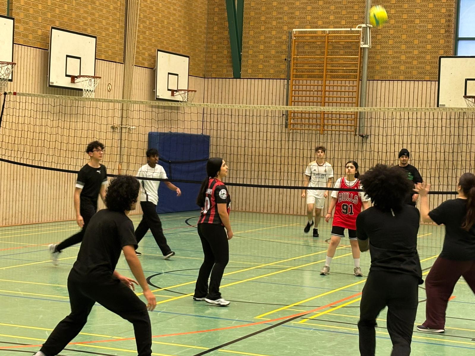 Am 12.12. fand in unserer Sporthalle wieder das Oberstufen-Volleyballturnier statt. Auch bei der dritten Auflage traten Lehrerinnen und Lehrer sowie Schülerinnen und Schüler aus der EF, Q1 und Q2 gegeneinander an. Neu in diesem Jahr war, dass sich erfreulicherweise auch Ehemalige angemeldet haben. Die Teams sorgten für tolle Spielzüge, spannende Spiele und eine großartige Stimmung in der Halle. Am Ende setzte sich das Team Hoeschpark SC durch und wurde mit Weihnachtsschokolade und einem Gutschein bei Ayman’s in Dortmund belohnt.