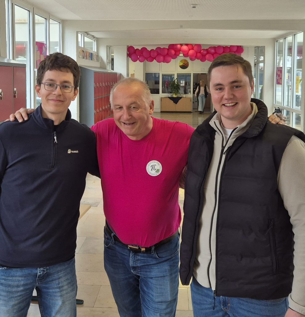 Schon beim Betreten der Schule war klar: Heute dreht sich alles um π. Das Motto des Tages war Pink, und das konnte man wirklich überall sehen. Viele Schülerinnen und Schüler sowie Lehrerinnen und Lehrer erschienen in pinker Kleidung. Zwei Lehrerinnen gingen sogar noch einen Schritt weiter und färbten sich extra für den Tag die Haare pink. Überall hingen π-Memes: an Wänden, Türen, Tischen oder sogar auf T-Shirts und sorgten schon am Morgen für gute Laune.