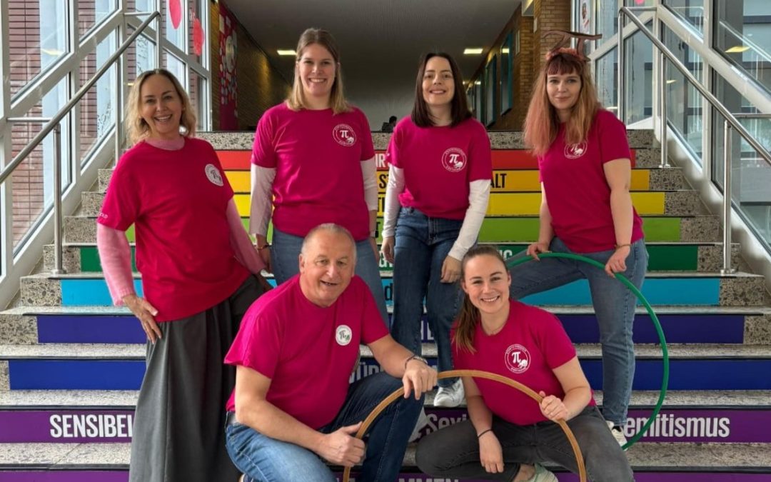 Für die passende Stimmung lief in den Pausen π-Musik durch die Schule. Dazu gab es zahlreiche Mitmachaktionen: Besonders beliebt waren π-Seilspringen, π-Hula-Hoop und π-Basketball, bei denen Bewegung und Mathematik auf kreative Weise zusammenkamen.